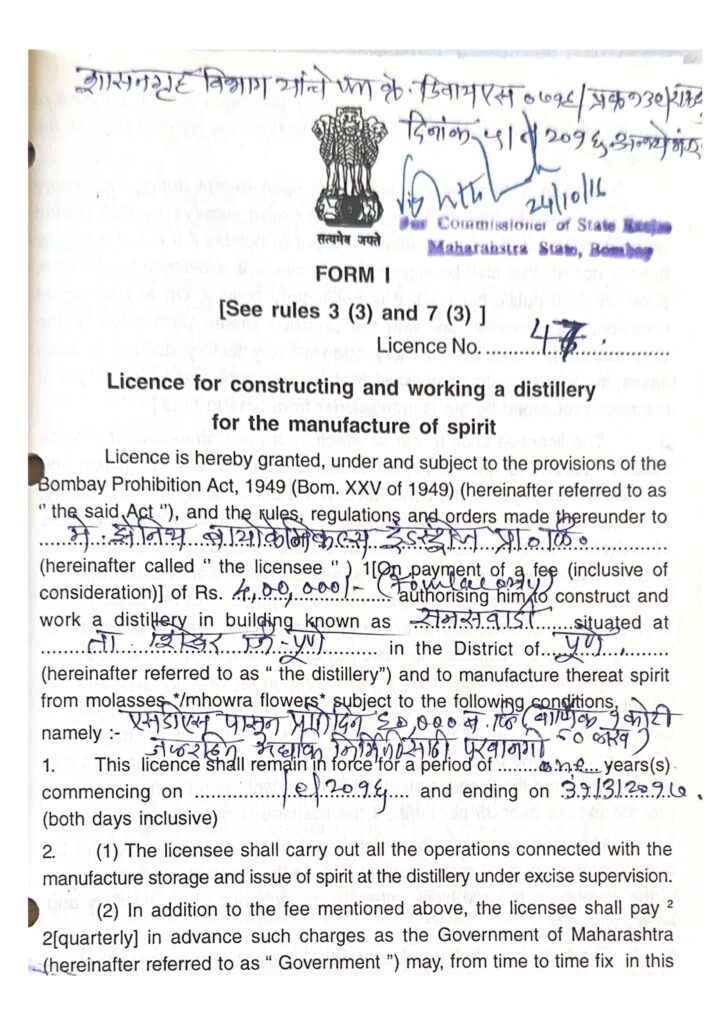License For Distillery
